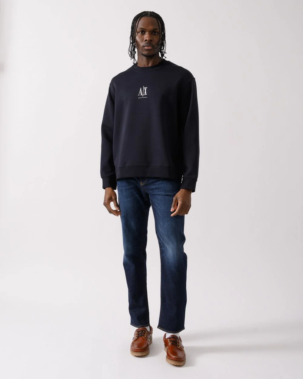 Armani Exchange Mens Embroidered A|X Centre Logo Crew Neck Sweatshirt - Deep Navy UB101