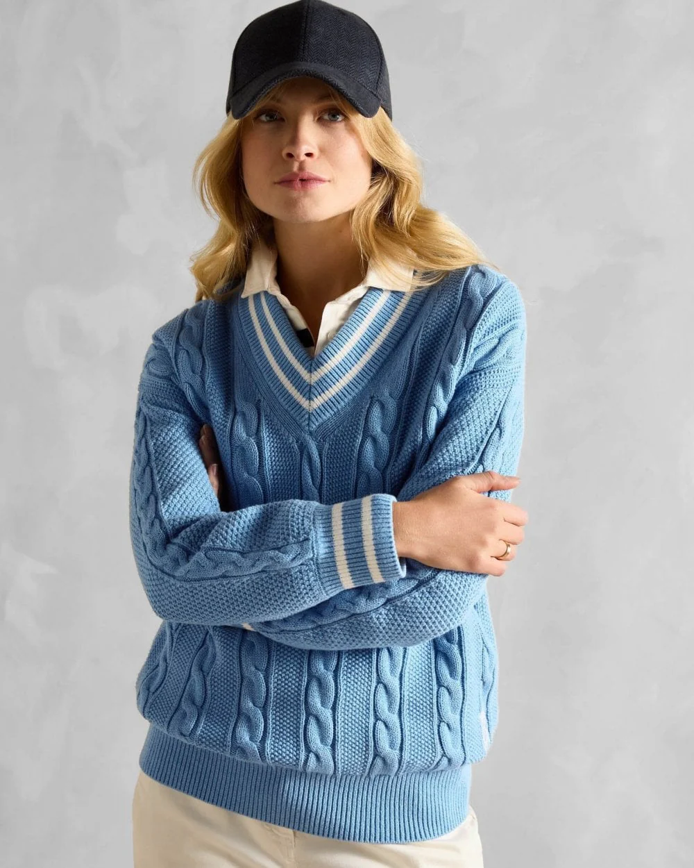 Joules Dibly Womens V-Neck Cable Knit Jumper - Blue