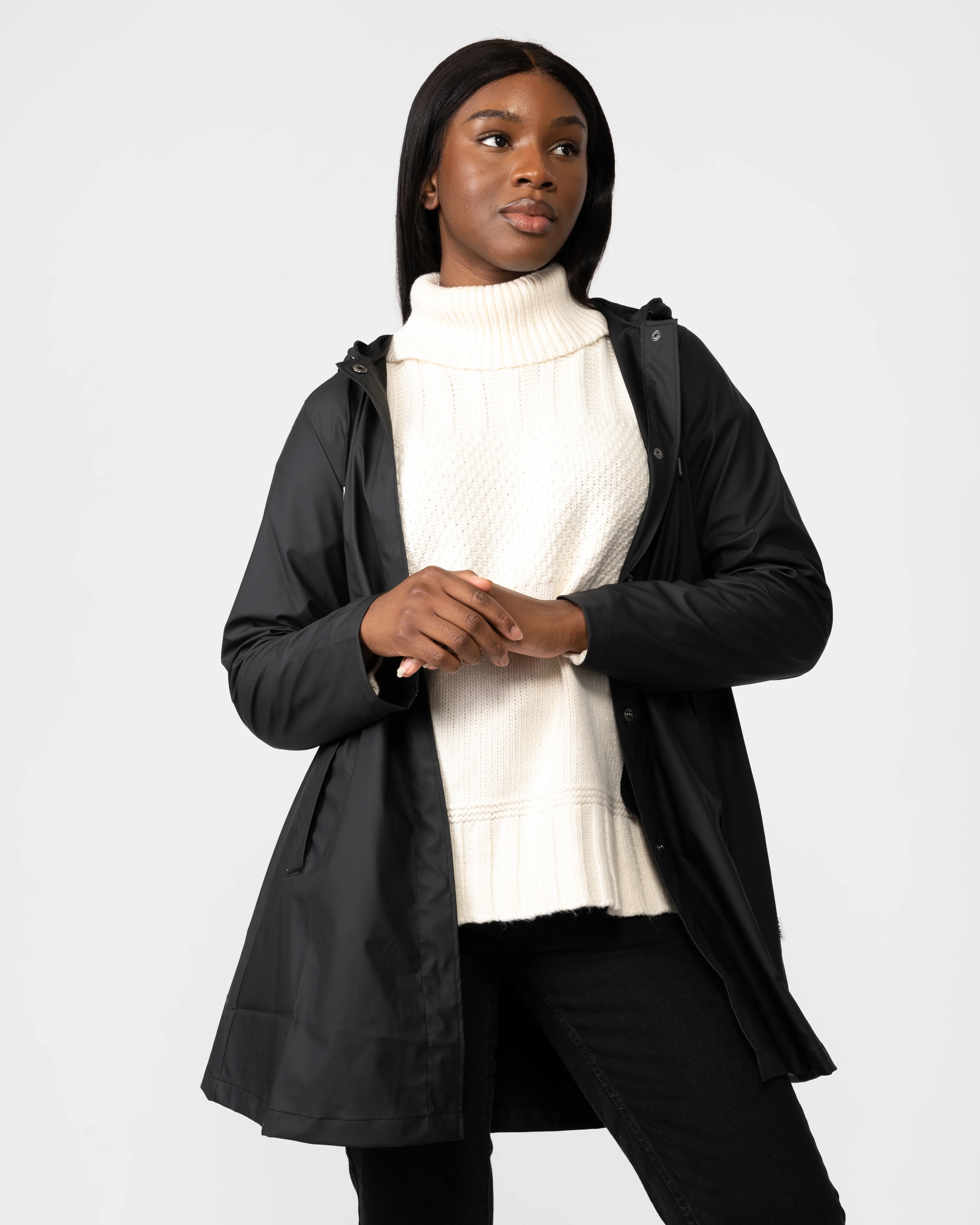This waterproof jacket is cut from Rains’ signature PU fabric and features ultrasonically welded seams. The finish is lightweight with a soft feel and elegant drape.